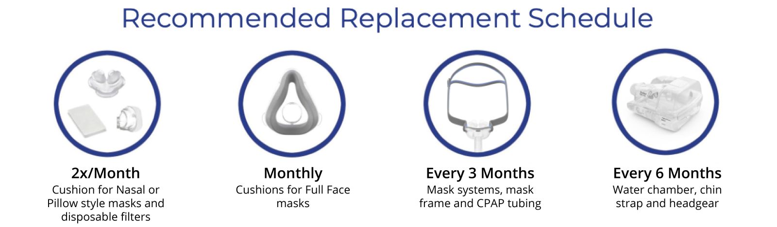 Replacing your supplies on schedule helps keep your therapy effective, clean, and comfortable. Most insurance plans cover regular replacements because they know how important this is for your health.